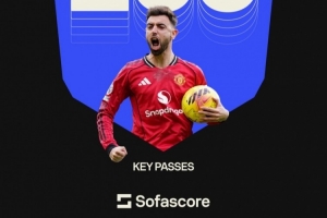 体育资讯3月21日讯 据Sofascore统计,B费本赛季英超送出100记关键传球,遥遥领先其他球员,他也是本赛季五大联赛首位关键传球达到100次的球员。