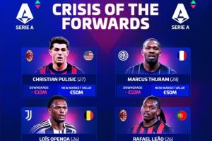 意甲最新身价前十(单位:欧元)↓