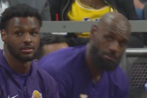 雷迪克对詹姆斯父子方向喊换人,老詹露头了