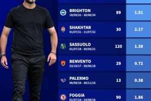 布莱顿(2022.09.18-2024.06.30,89场):场均1.51分