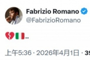 赛后,意大利名记罗马诺发布社交媒体,心碎的表情配上意大利国旗。