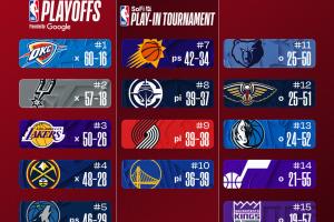 最新排名:湖人&掘金双锁季后赛 快船确定打附加赛 骑士无力争东1
