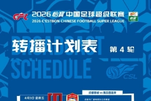体育资讯4月2日讯 中超第4轮将于4月3日-4月5日进行,中超官方公布本轮转播计划,CCTV16直播海港vs玉昆,CCTV5+直播浙江队vs铜梁龙。