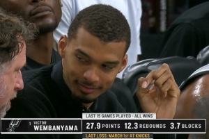 文班上次出战时失利还是3月2日 当时马刺89-114不敌尼克斯
