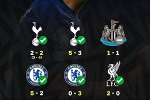 欧冠:5-3热刺、1-1纽卡、5-2切尔西、3-0切尔西、2-0利物浦
