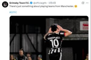 比赛结束后,格林斯比官方晒出比分图,并且配文:“和来自曼彻斯特的球队踢比赛真的有点说法的。?”