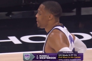 他2016-2017赛季,曾在雷霆单赛季命中200记三分,排在生涯之首